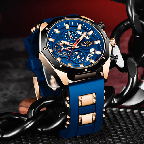Men's mechanical luminous watch, waterproof wristwatch, blue silicone strap, Seagull movement.